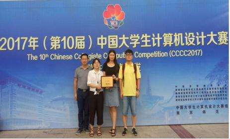 The 2017 (tenth) Chinese College Computer Design Contest was held in Hefei. Our two teams won the national second prize. Among them, Wang Yan,and the students team Wu Shumin, Yang Yizhen designed the entry "Photoshop in the clipping mask application through housing secret" won the "micro courses and teaching assistant class national award, getting highly recognized experts. Teacher Wang Hua's 2014the grade student team, Luan Yu, Ding Lei, Zhao Jinmin's entries "easy to practice" also achieved good results, won the "software application and development class" the national two prize.