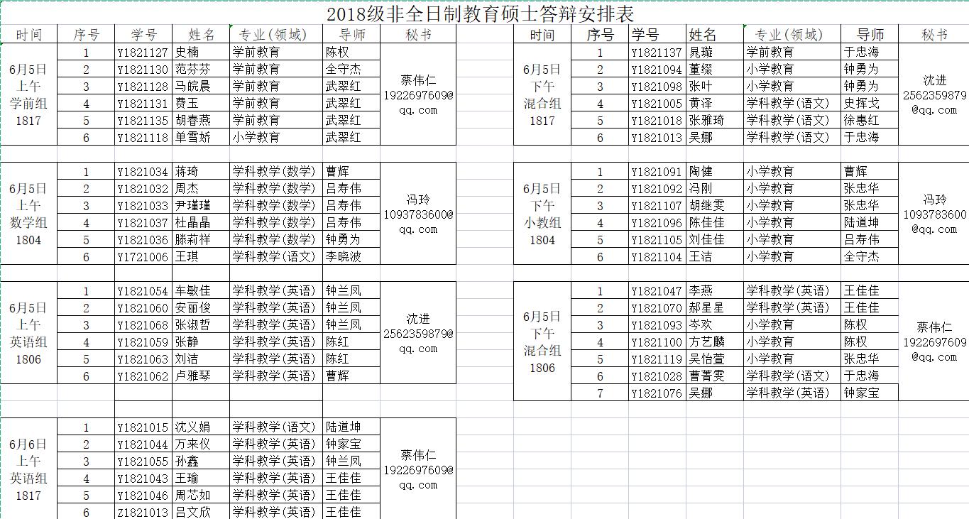 澳门银河娱乐城 2021届非全日制教育硕士毕业论文答辩将于2021年6月5日--6月6日在三江楼举行,安排如下,特此公告。