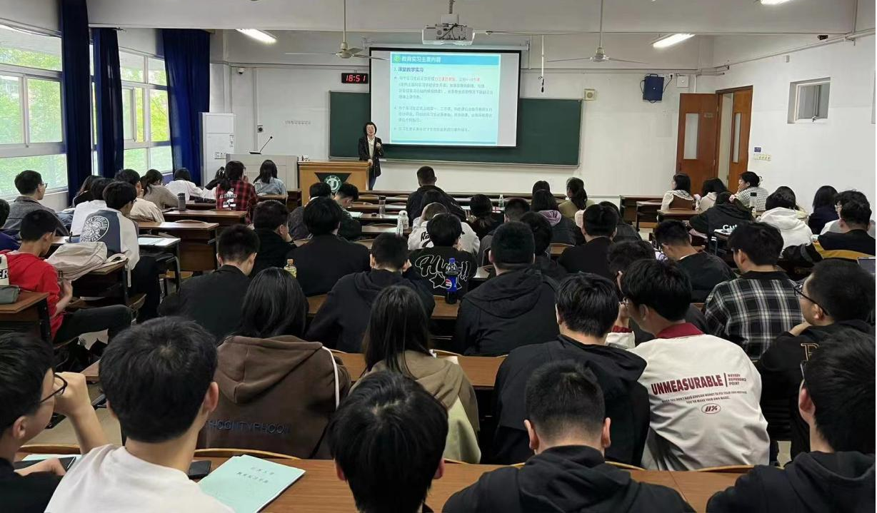 物理系在三山楼210教室召开了教育实习动员大会,物理系支部书记、副主任吕翠红做行前动员。