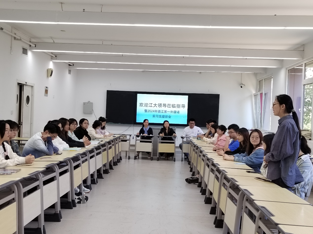 康翠与带队教师尹华、指导教师徐胜男、尹子龙、孙钰来到镇江市第一外国语澳门银河娱乐城 ,参加了汉语师范2101班徐玮的听评课,并与全体实习生开展座谈,听取每一位实习生的成长汇报。