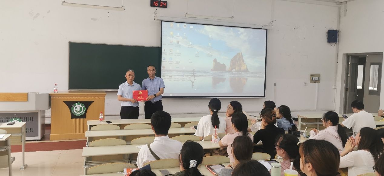党委书记张明平为夏老师颁发证书,并对其支持外国语澳门银河娱乐城