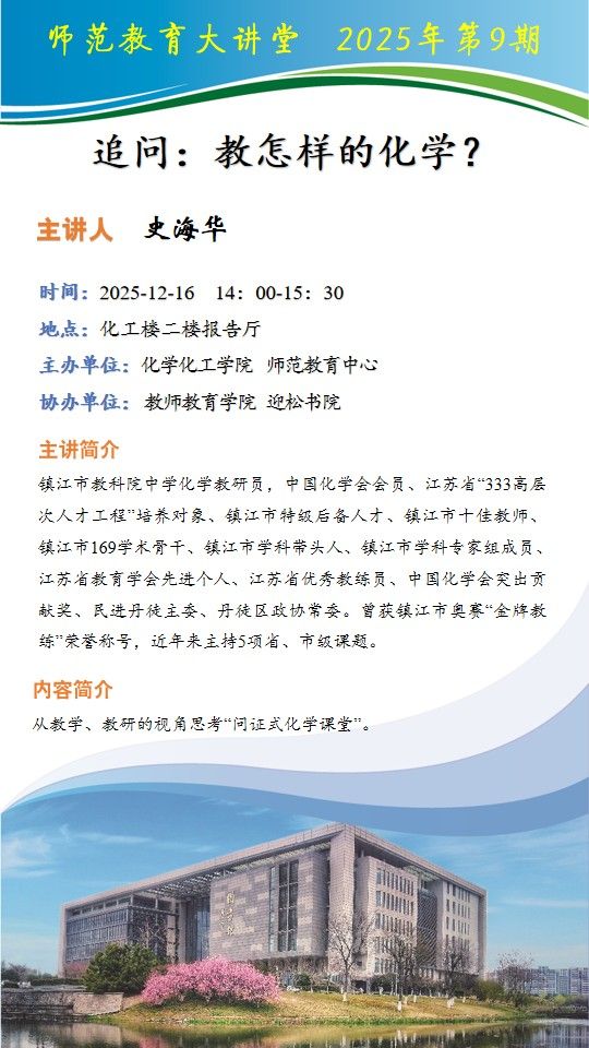 上一条:【师范教育大讲堂】2025年第10期 “双新”驱动教学提质,AI赋能素养育人——2024沪教版化学教学的实践探索与育人反思 下一条:第十四届江苏省师范生教学基本功大赛和第十一届“田家炳杯”全国师范院校师范生教学技能竞赛澳门银河娱乐城获奖师范生风采展