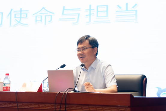 黄科文做题为《新时代师范生的使命与担当》的专题讲座,从使命之源、现实之问、担当之基、成长之路四个主题,为同学们传授“师德养成”的新时代实践路径:明确践行教师使命、清醒审视现实挑战、扎实筑牢担当根基、科学规划成长路径。讲座后,全体师生一起宣读誓词。