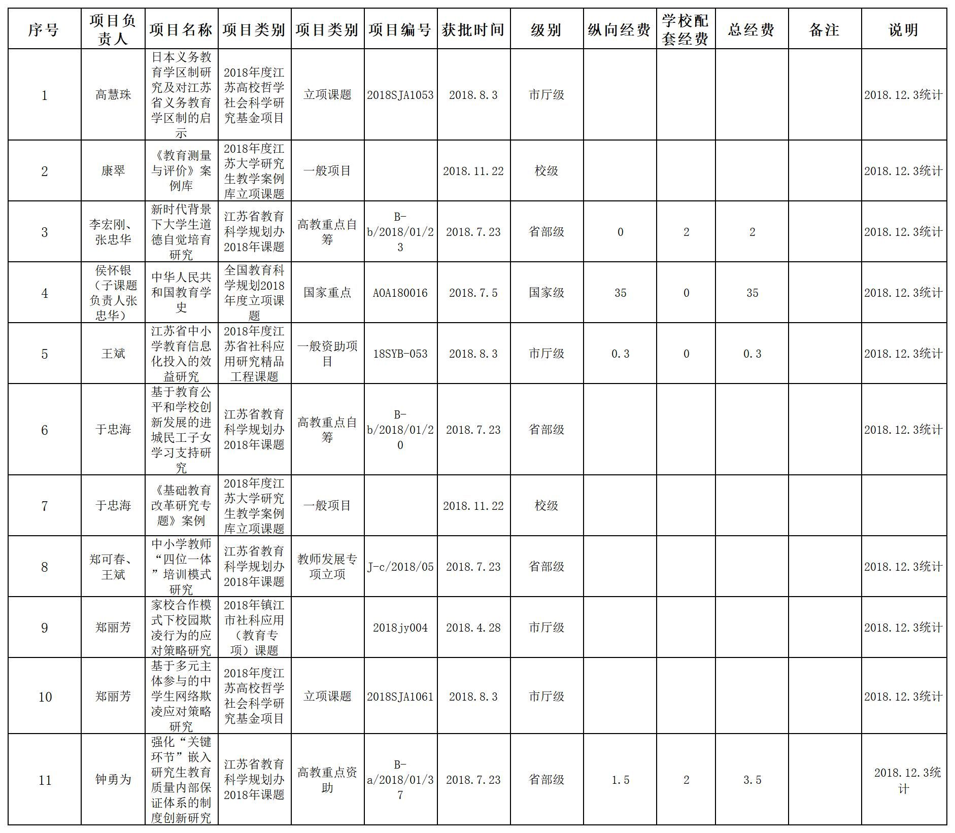 2018-2019 年度科研项目
