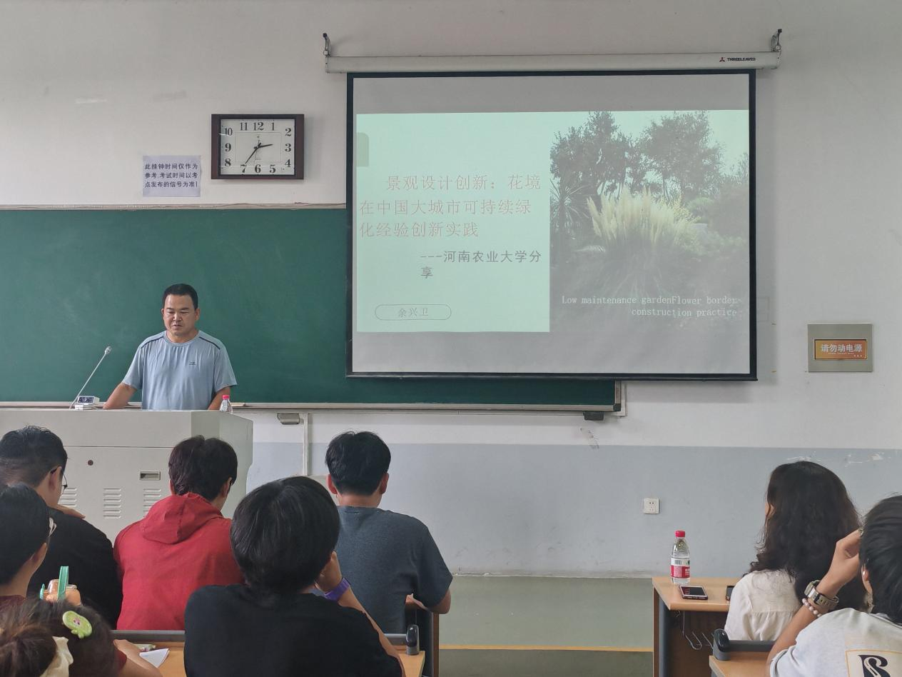 “耕读论坛”专题讲座在龙子湖校区校区繁塔楼教室顺利举办。本次论坛特邀全国五一劳动奖章余兴卫担任主讲,以景观设计创新:花境在中国大城市可持续绿化经验创新实践为主题,为园艺类24级学生带来一场别开生面的专业知识盛宴。