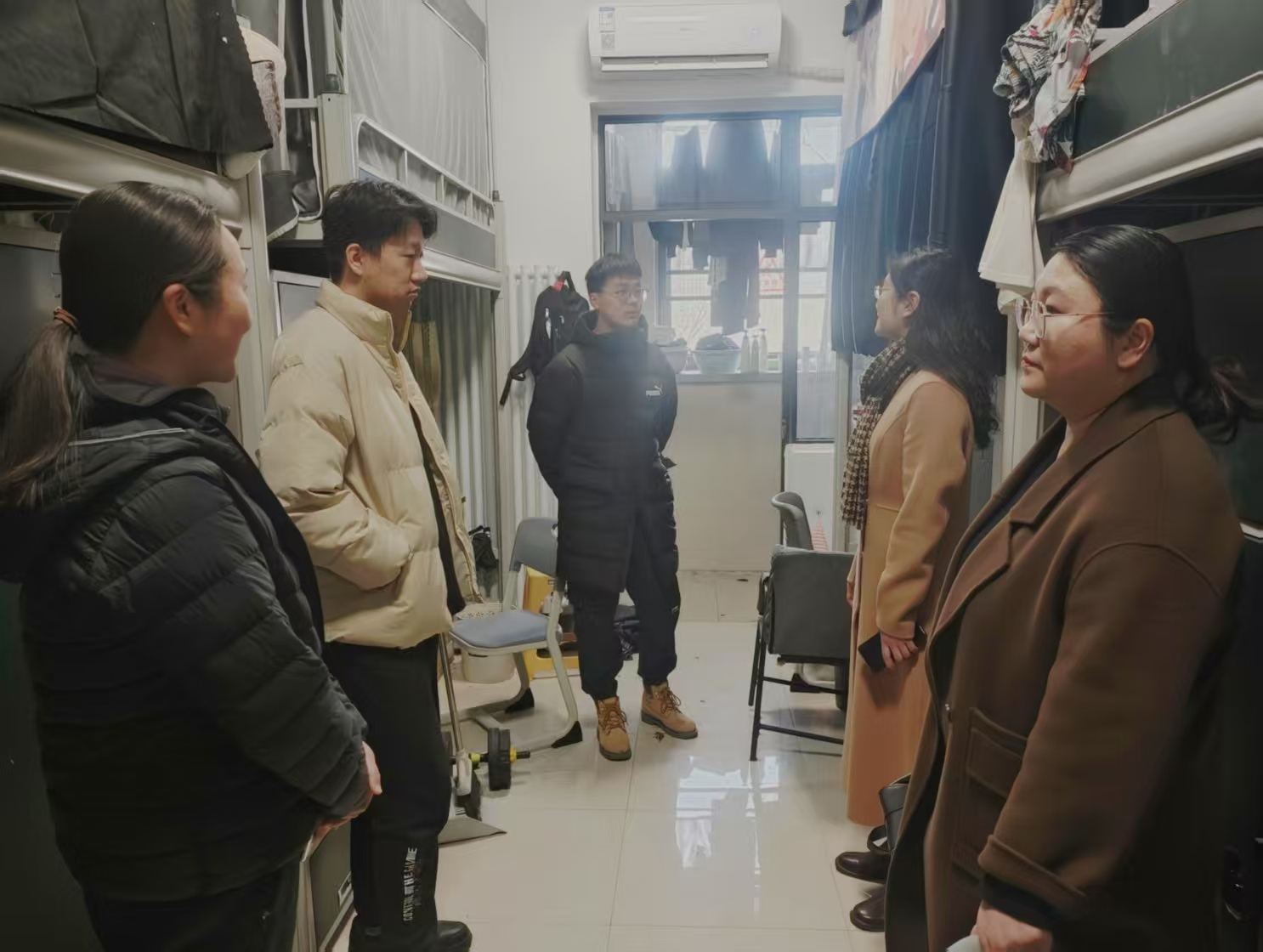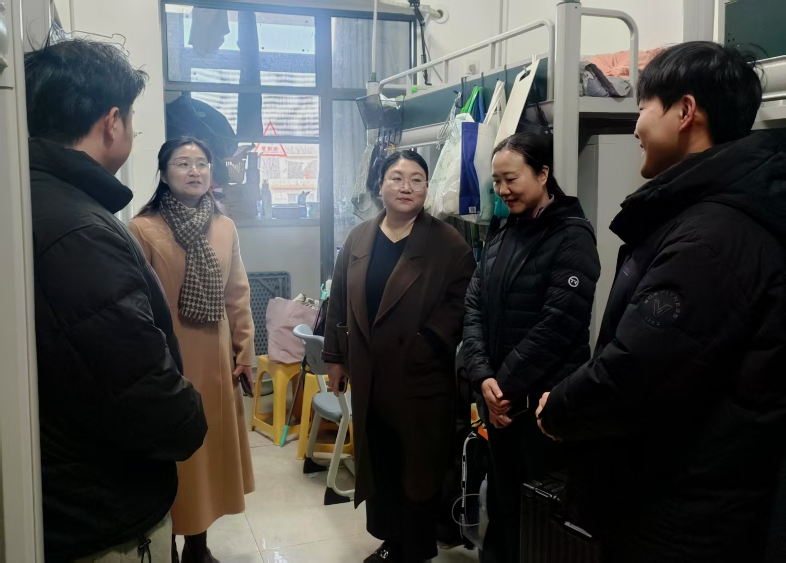 党委书记秦素玲、院长郑先波、院党委副书记余果、副院长谭彬及团委辅导员一行深入学生宿舍,走访慰问返校学生,为他们送去新学期的关怀与问候。