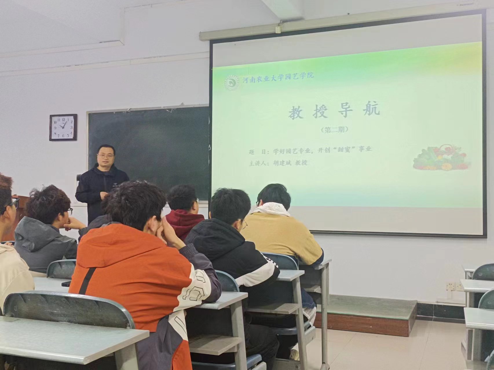 胡建斌教授为园艺类23-4班做“学好园艺专业,开创甜蜜事业”的主题交流讲座。