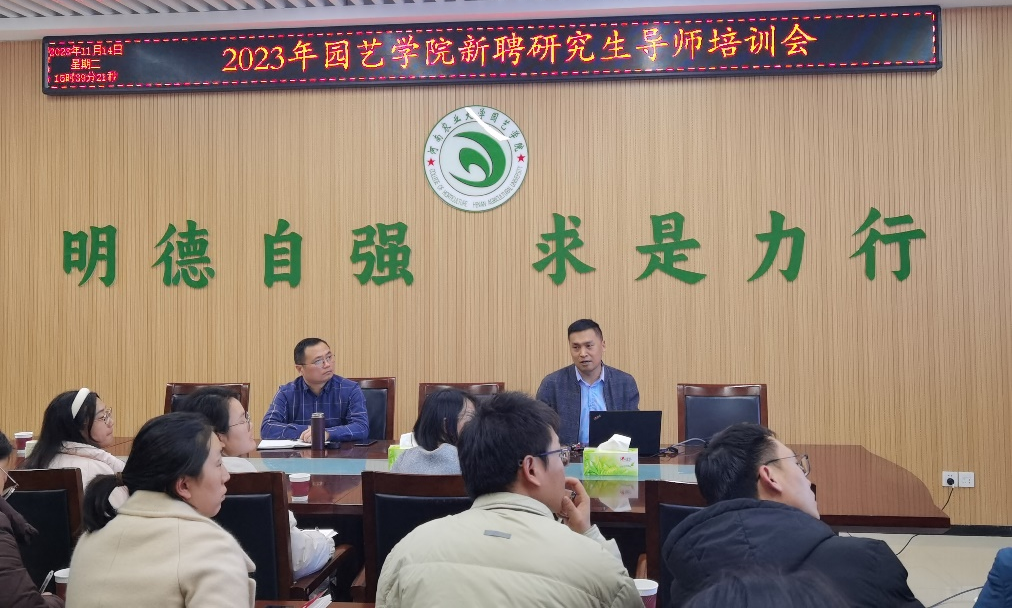 在力行楼北215会议室举办新聘研究生导师培训会,培训会主讲教师为副院长胡建斌教授和科研秘书白团辉教授。此次培训会的主题为园艺学科及学位点介绍、科研项目的申报与结题。全院2022年、2023年新聘任研究生导师参加了会议。