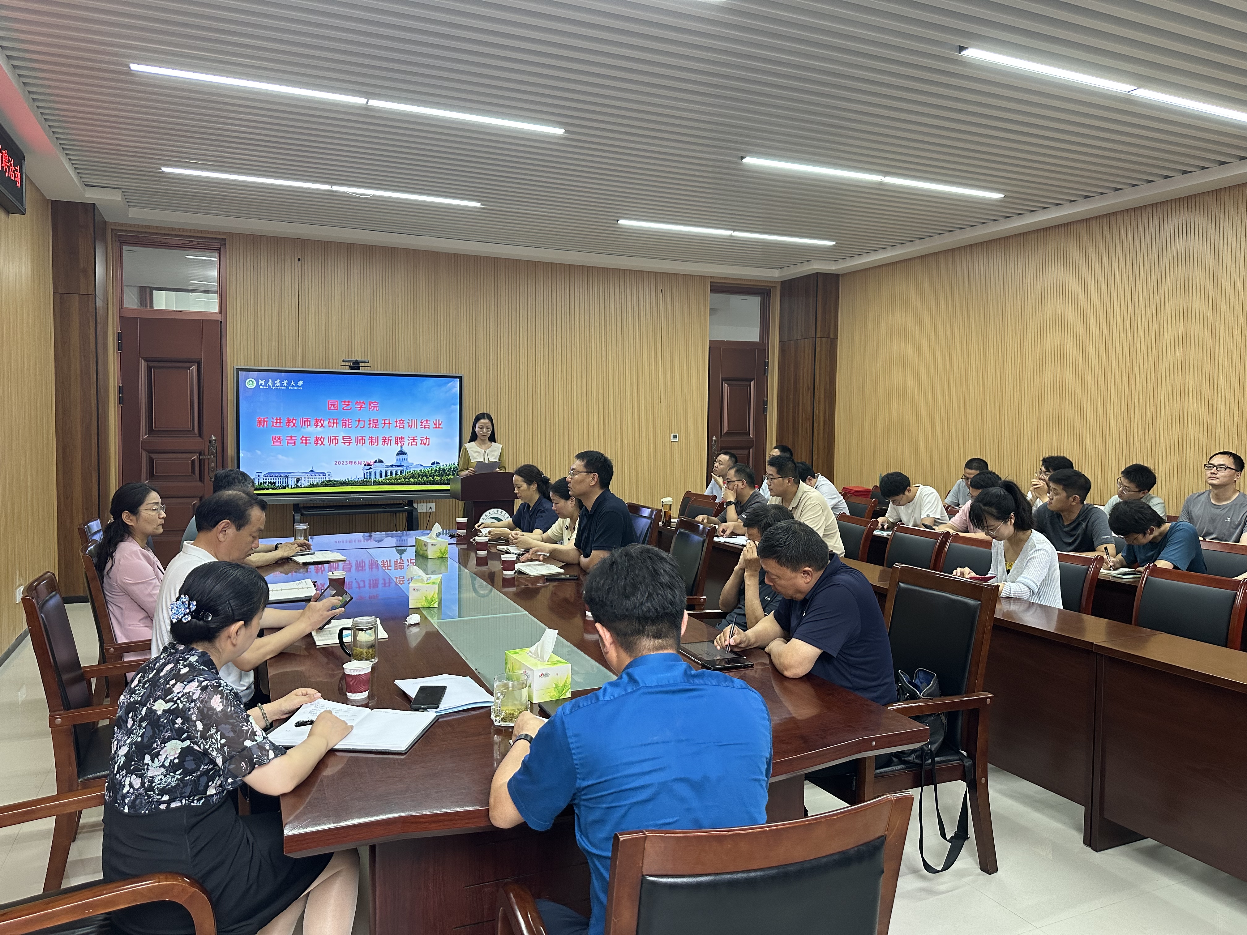 召开2023年度新进教师教研能力提升培训结业暨青年教师导师制新聘活动,院党委书记秦素玲、院长孙守如、学术委员会委员、青年教师导师及相关青年教师参加,副院长郑先波主持会议。