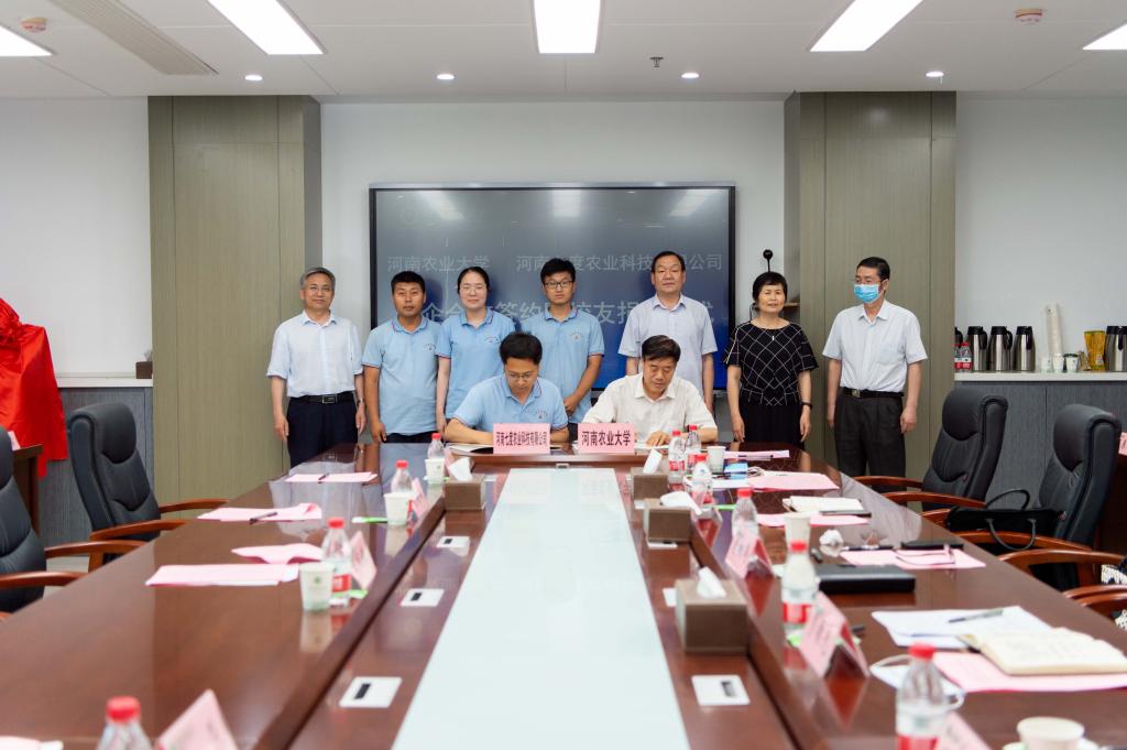 与河南七度农业科技有限公司校企合作签约暨校友捐赠仪式在龙子湖校区举行。副校长康相涛、河南七度农业科技有限公司董事长、澳门银河娱乐城