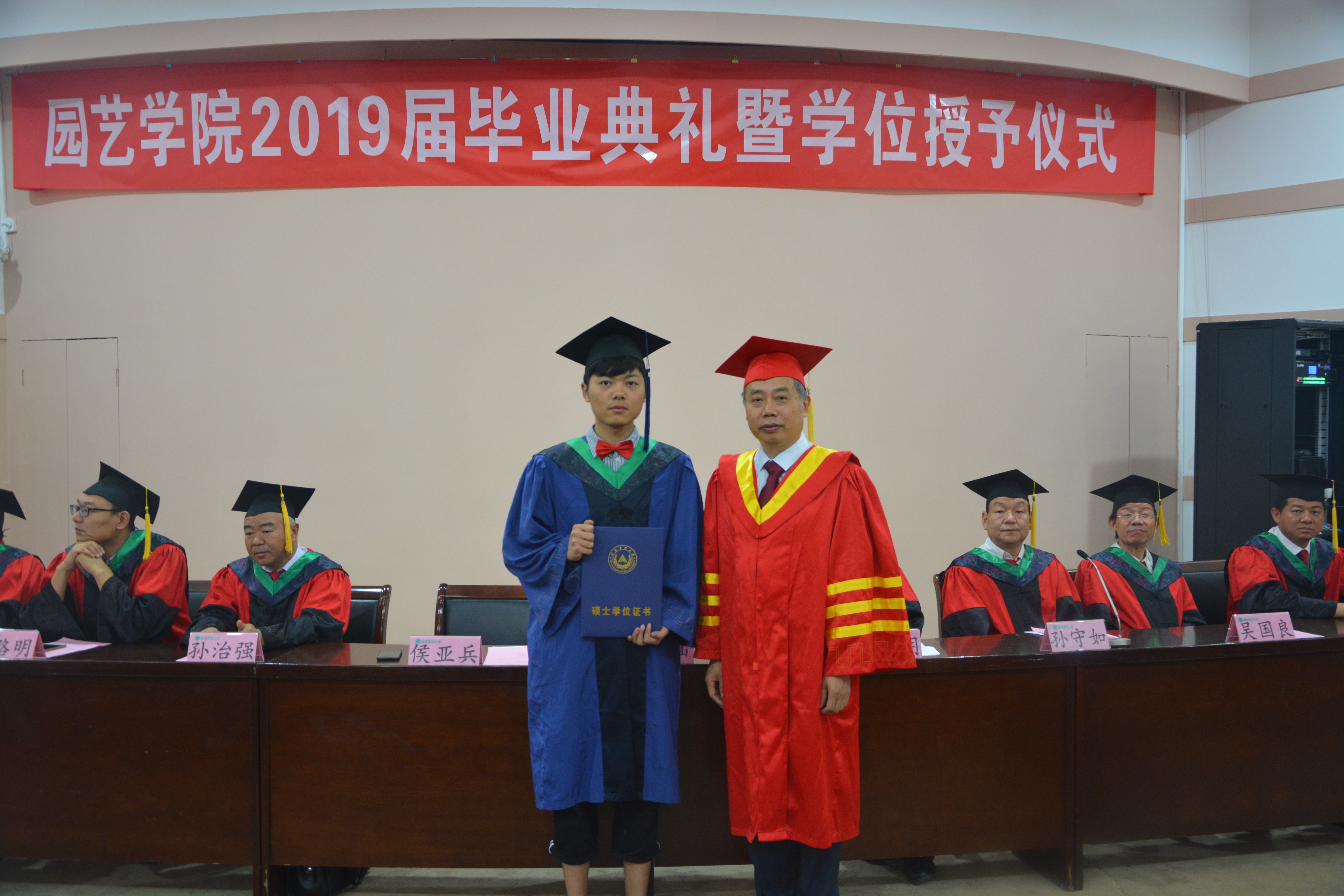 党委书记耿超明主持。院党委副书记侯亚兵宣读2019届优秀毕业生名单,副院长孙守如教授宣读学位授予决定。