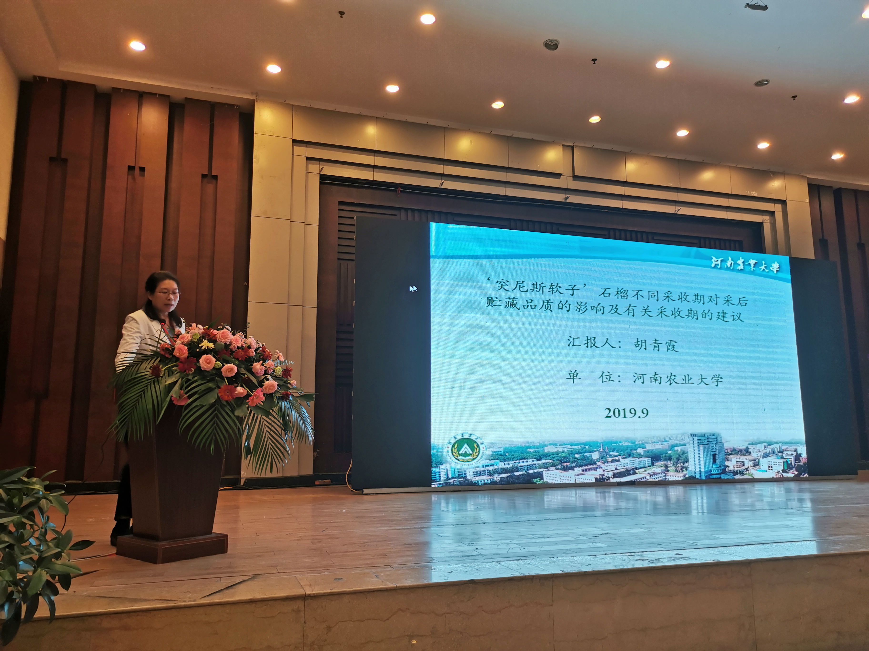 胡青霞副教授进行了石榴采后保鲜相关的学术报告。本次博览会胡青霞副教授《鲜切“突尼斯软籽”石榴籽粒保鲜研究》论文及万然博士《“突尼斯软籽”石榴自交一代颜色性状分离及形成基础研究》论文分别荣获第三届石榴博览会论文一等奖和二等奖。