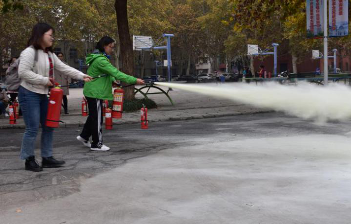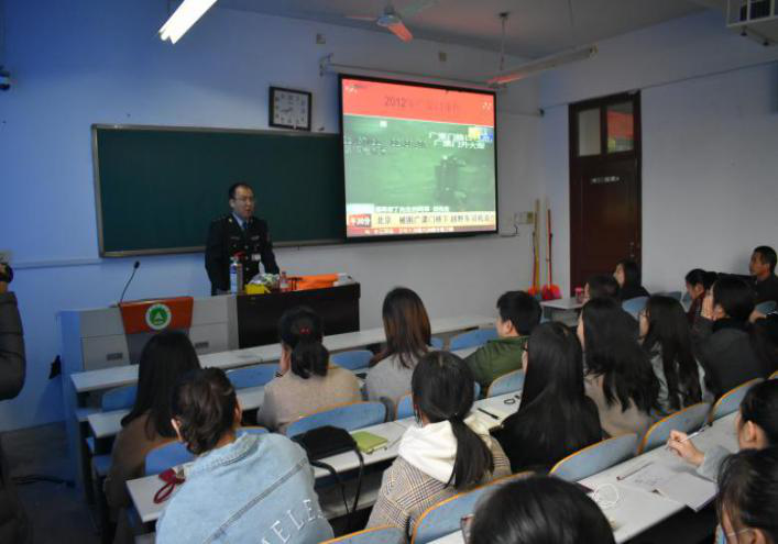 邀请河南省消防协会李文然教员为大家进行消防安全知识讲解。李教员主要以提高消防意识及增强自防自救能力为主,结合近期的重大火灾案例分析,对工作生活中遇到突发事件的处理方法等进行讲解,动员全体师生树立良好的消防安全意识。随后,参会人员进行消防现场演练。