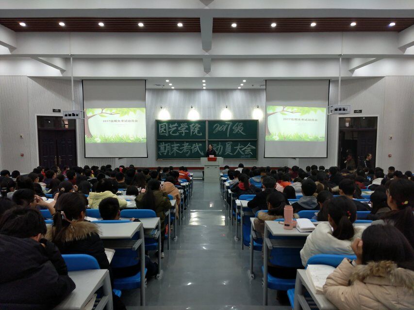 于12月27日下午,在龙子湖校区繁塔楼大教室二召开2017级期末考试动员大会,党委副书记侯亚兵、17级辅导员陈桃以及17级全体学生参加了此次会议。
