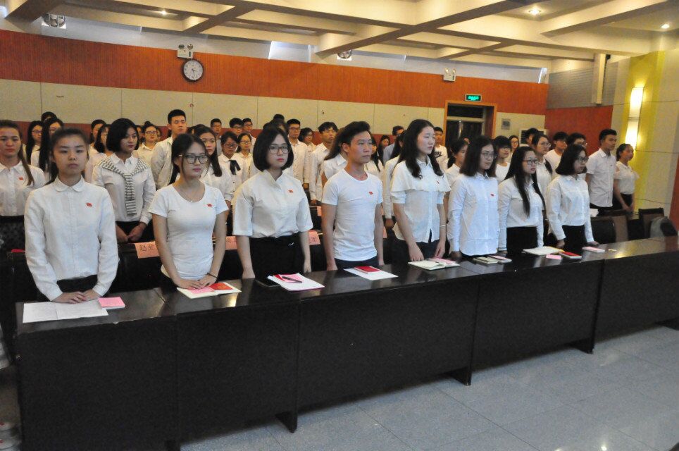 会前,老党员为每一位新党员赠送党章党徽,大会在雄壮的国际歌中开始。之后,院辅导员陈桃宣读新党员名单,院党委组织委员黄婉珺带领新党员宣誓、老党员重温入党誓词,澳门银河娱乐城