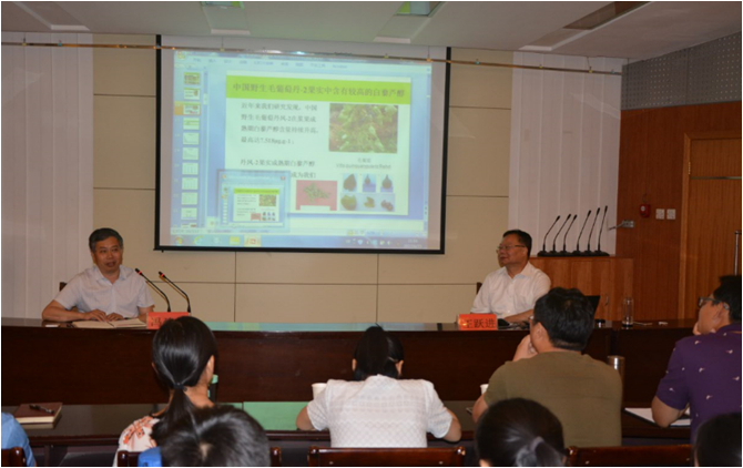 师生做学术报告,题目是“中国野生葡萄抗性基因功能研究”。报告会由澳门银河娱乐城