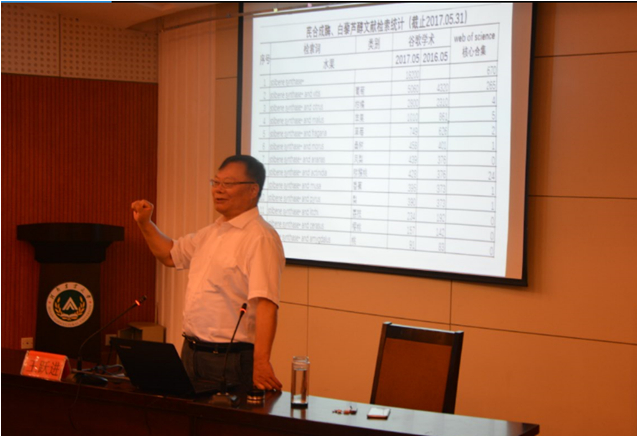 王跃进教授以野生葡萄的特异性状为切入点,首先介绍了近两年在国际学术研究领域,葡萄、芪合成酶、白藜芦醇的研究现状。结合自己科研团队二十多年来坚持研究中国野生葡萄抗逆性的科研经历,与大家分享了近五年来,该课题组在中国野生葡萄芪合成酶基因、转录因子、泛素连接酶等的时空表达以及功能验证方面的研究思路和技术方法,并且介绍了转基因的技术特点和方法。让大家充分认识到科学研究不仅要关注“不同”,更要在“差异点”深入研究,同时鼓励研究生“科研贵在坚持”,要开拓思路,持之以恒。