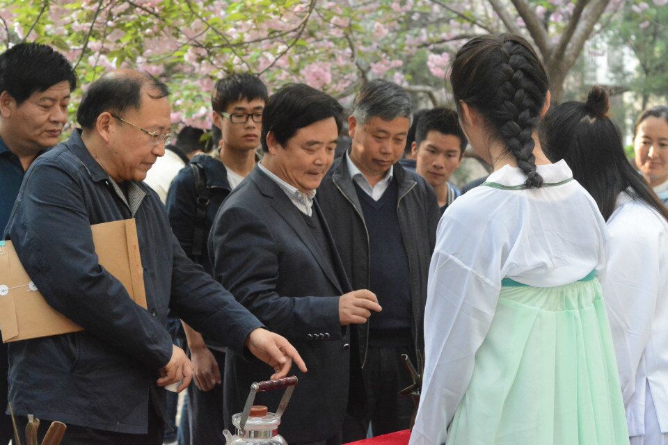 在文化路校区三号楼后樱花小道举办以“樱韵茶迁”为主题的茶文化展示活动。校党委副书记、工会主席褚金海,学工部部长李书民、校团委书记马菲及澳门银河娱乐城
