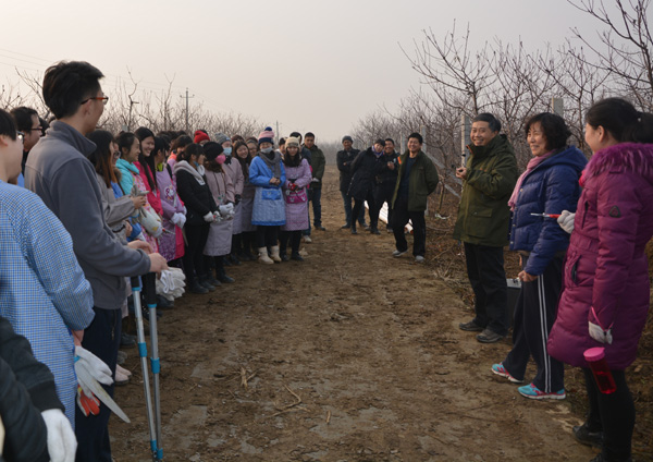 院长冯建灿一行在果园里观察巡视一圈儿后,领队老师把同学们都集中到一起,冯建灿对同学们的修剪进行了指导评议,并对实习效果提出了明确要求,他指出,本次实习条件艰苦,机会难得,同学们在这大冷天到离校近千里的野外实习,一定不要辜负了自己的辛苦、老师的心血和澳门银河娱乐城