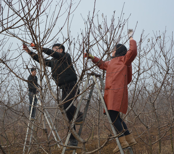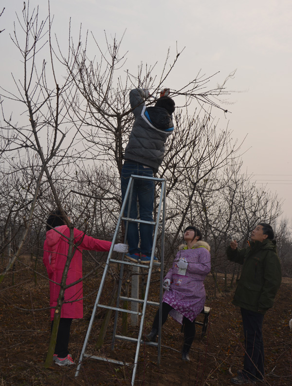 院长冯建灿便带领着果树系主任陈延惠教授等直奔南阳社旗学生冬剪实习基地,看望奋战在冬季修剪一线的百余名师生,为师生送去圣诞前夜的平安果。