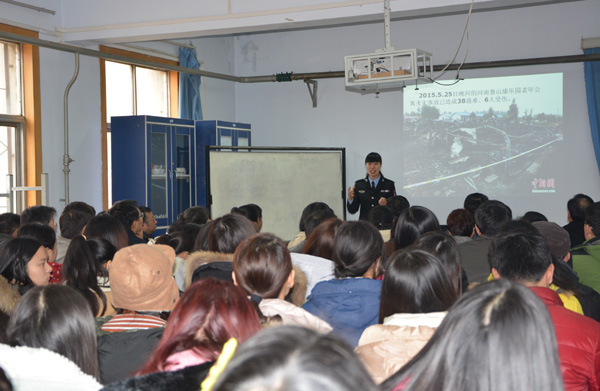 讲座开始,副院长孙守如介绍本次活动的主要内容和目的,并对台露佳老师的到来表示了热烈的欢迎。随后,台露佳老师通过ppt和视频展示了一些真实的案例现场和模拟视频,如天津爆炸事故、上海市静安区火灾、洛阳东都商厦火灾等等,调了消防意识的重要性。紧接着,台老师又讲述了消防器材的使用方法、火灾现场逃生技能等。最后,院长冯建灿做重要讲话,进一步强调消防安全的重要性,要求广大师生要时刻绷紧消防安全这根弦,谨记操作章程,严格按实验要求和程序操作,同时各实验室管理人员要切实负起责任,定期检查实验器材以排除安全隐患,确保自身和他人的生命和财产安全。