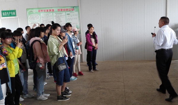 在文新茶叶加工厂参观,高厂长为同学介绍茶叶加工知识