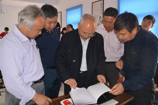 领导们查看学生实习日志