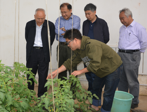 育苗温室和无土栽培实验温室,查看了番茄、黄瓜、辣椒、甜瓜和西葫芦育种实验大棚。谭金芳对澳门银河娱乐城