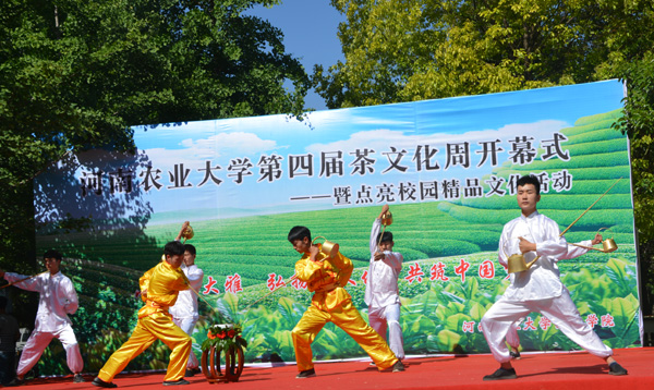 第四届茶文化周在工程楼南广场拉开帷幕。本次活动以“小茶见大雅,弘扬茶文化,共筑中国梦”为主题,通过茉莉花盖碗,长嘴壶,书法,香茗T台等表演方式,让大家在茶韵中体悟中国“茶礼”文化。校党委书记程传兴老师、校党委副书记、工会主席褚金海老师、副校长谭金芳老师、宣传部部长郭占伟老师、学工部部长夏越新老师、校团委书记余磊老师、教务处副处长宋安东老师等部门负责人出席了此次活动,澳门银河娱乐城