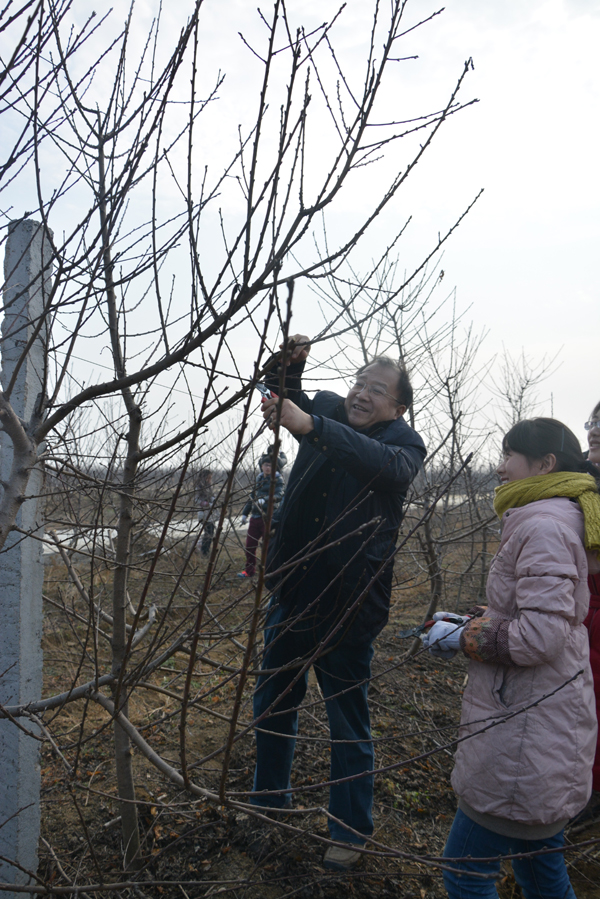 一年一度的学生冬剪实习队伍第一批108名学生,在果树系副主任郑先波副教授、省特聘教授吴国良、简在海、孟海军、史江莉和白团辉等6位老师和院团委书记李坤的带领下,已于1月5日入住南阳社旗京源生态农业公司果园基地,进行为期6天的果树冬剪实习。1月8日,院党委书记耿超明、院长冯建灿一行赶赴基地,看望正在那里进行实训的学生和老师。