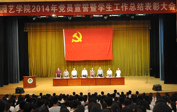 在校大礼堂隆重举行了2014年党员宣誓暨学生工作总结表彰大会。校党委组织部部长杨志清,校学生工作部副部长张红阳,澳门银河娱乐城