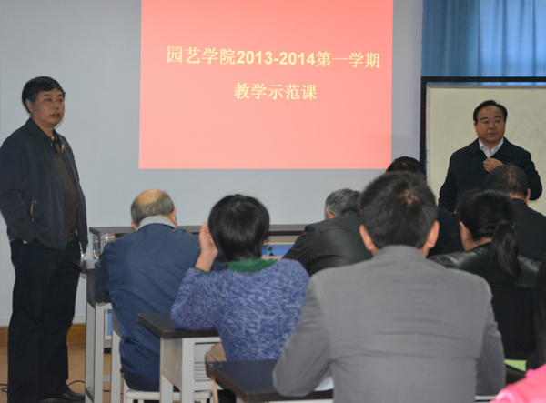 2013-2014第一学期教学示范课讲评活动。教学示范课讲评活动由院长冯建灿主持,教务处副处长化青报,校级教学督导杨明亮,张玉龙应邀参加了讲评活动,教学示范课分别由蔬菜学科带头人孙治强教授和果树学科带头人吴国良教授主讲,澳门银河娱乐城