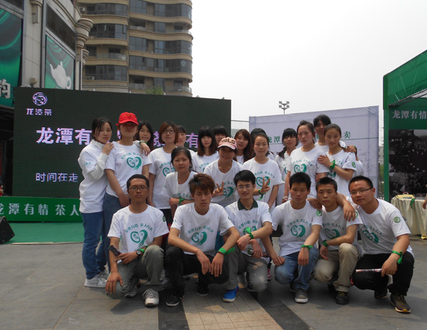 茶学专业大学生志愿者,组团参加了信阳毛尖集团龙潭茶叶有限公司在郑州市曼哈顿商业广场举办的大型茶叶义卖活动。本次活动所卖款项全部捐给四川雅安地震灾区。河南省茶文化研究会会长亢崇仁出席了本次茶叶义卖活动并在开幕式上讲话,开幕式由信阳毛尖集团龙潭茶叶有限公司副总经理杨波主持。