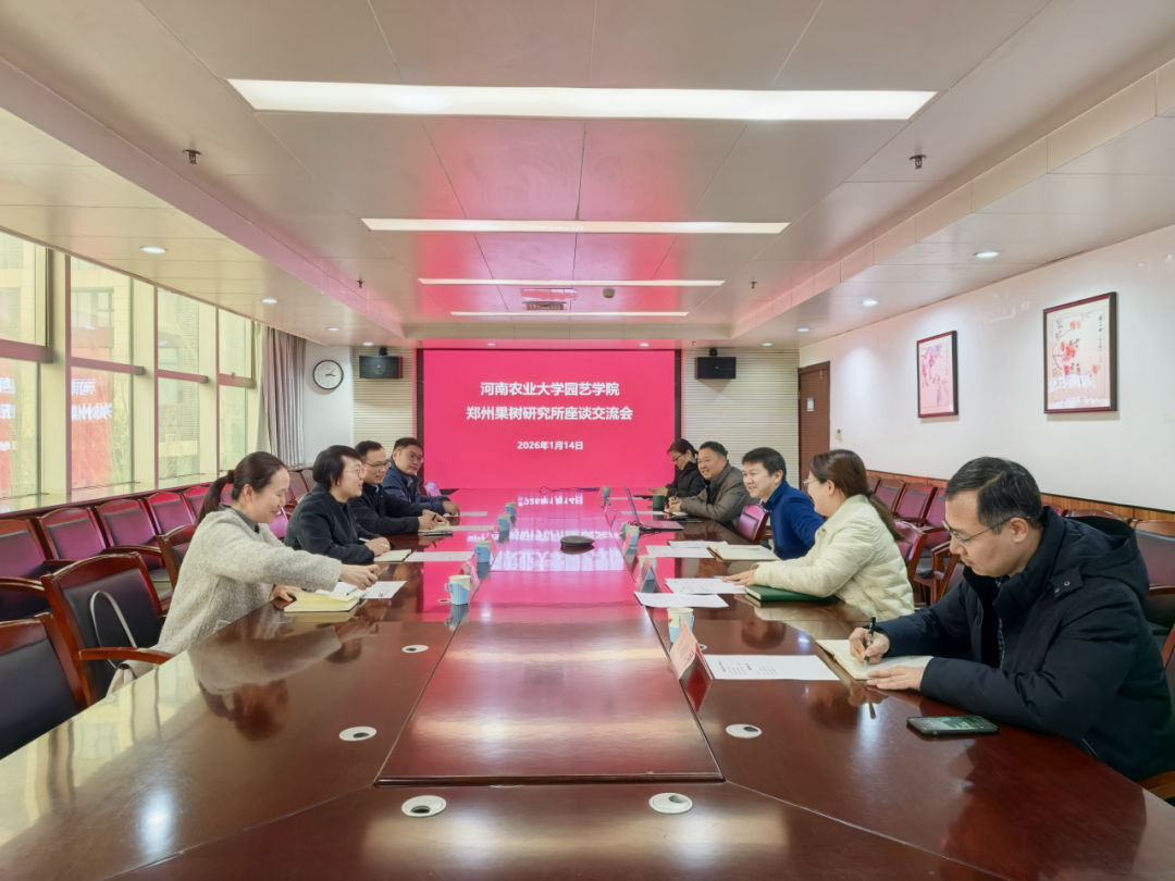 的办学沿革、学科建设与社会服务成效,回顾了双方已有合作基础与阶段性成果。她表示,面向“十五五”发展新要求,期待双方进一步强化战略协同,围绕党建与学科建设深度融合、平台共建、成果转化等重点方向提升合作层级。胡建斌院长强调,双方单位同处郑州,扎根中原,双方因园艺产业而聚、为创新而行,研究方向相互支撑、发展愿景同频共振,未来将持续深化协同创新,携手打造校所合作新标杆。