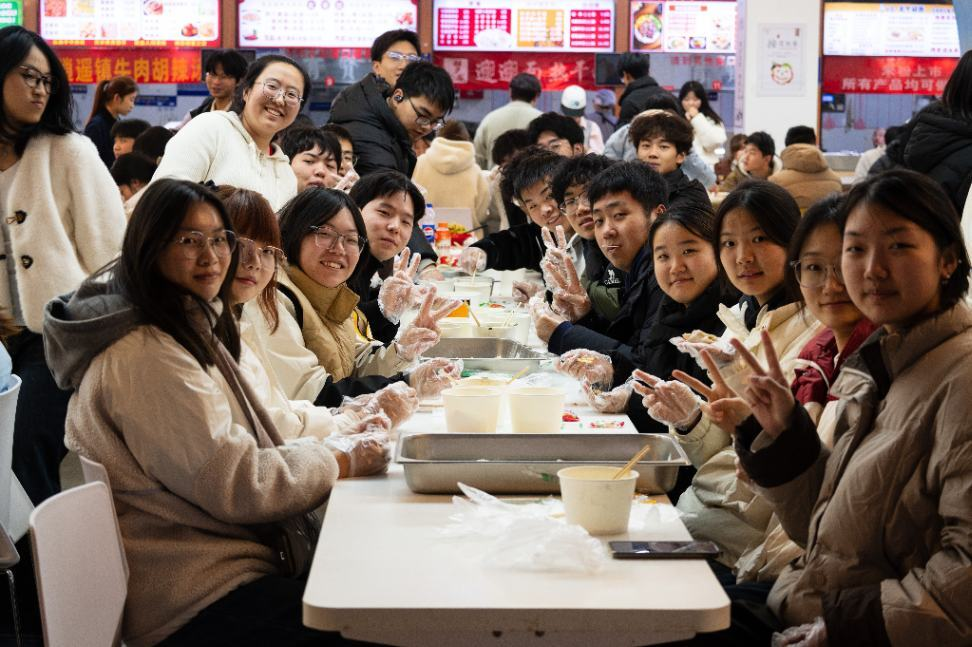 于文化路校区桃李学生公寓食堂一楼,开展了一场暖意浓浓的冬至包饺子活动。院党委副书记余果、2025级辅导员张钰倩、兼职辅导员刘瑶瑶、助理班主任与2025级全体学生齐聚于此,在欢声笑语里沉浸式感受民俗的独特韵味,共同勾勒冬日校园的温暖图景。