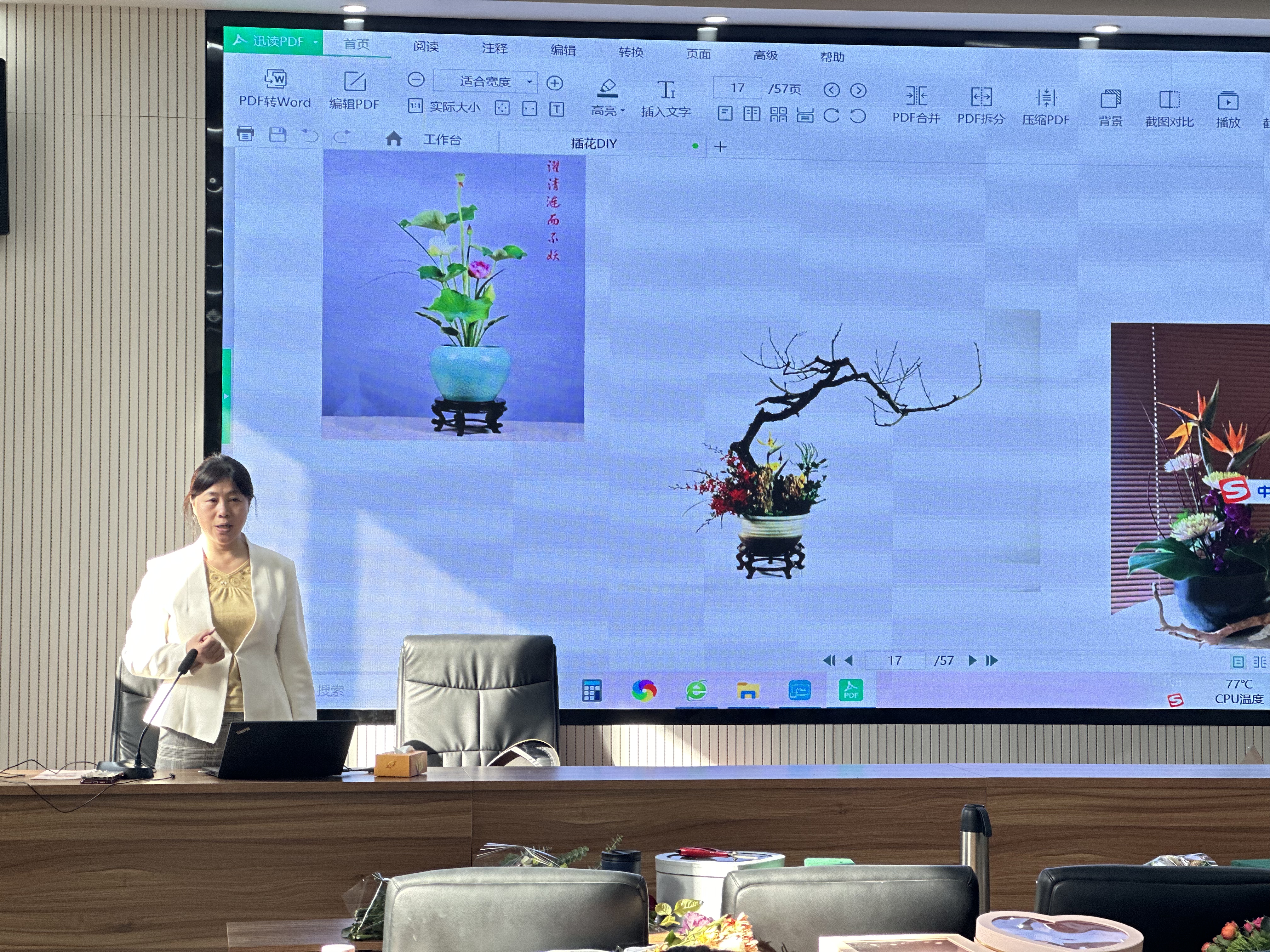 观赏园艺系的王献教授现场为大家科普了花艺小知识,介绍了插花中西方和古今的差异,不同的花器,以及插花的技巧方法等,之后观赏园艺系的老师们进行现场演示操作,并为职工逐一指导,现场氛围热烈而温馨。