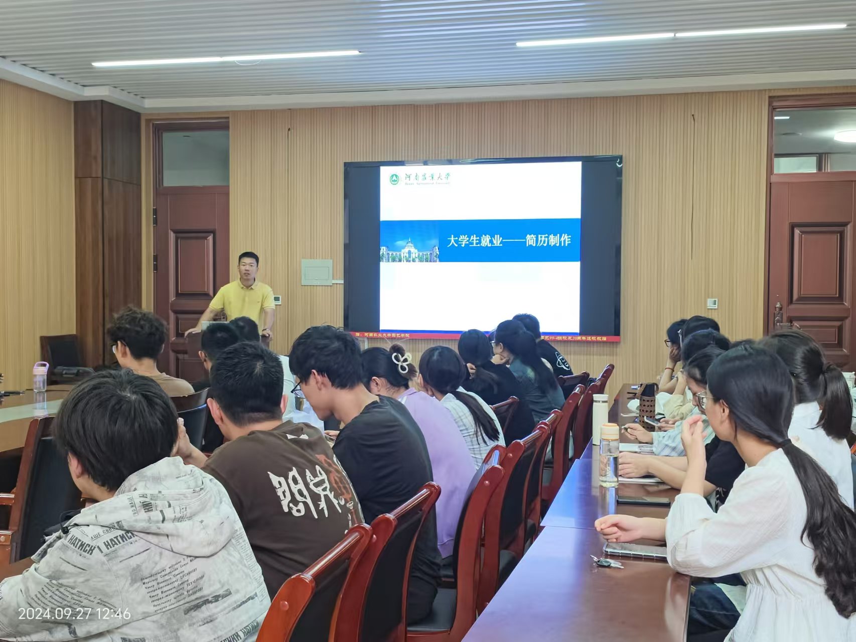 于在力行楼北215会议室举办简历制作培训会,此次培训会由院团委副书记丁坤主讲,2025届求职学生广泛参与。