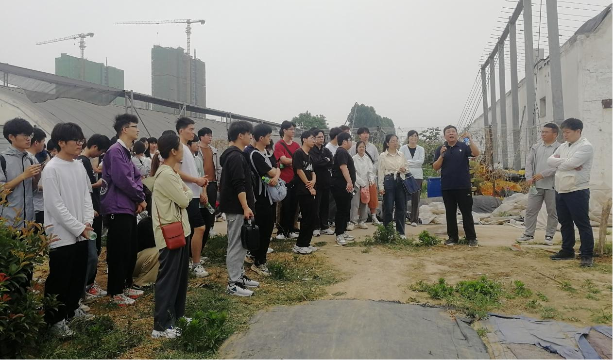 5月25日,学生们首先到达毛庄科教园区,设工系王吉庆教授结合线上企业发布的项目需求,引导大家实习过程要关注园区的规划设计、设施设备及造价、蔬菜种植模式及茬口安排等。接着,董晓星老师带领大家参观了智能化的温室大棚,介绍了温室的构造、环境调控系统以及智能化管理技术等。在老师们的指导下,学生们亲手操作了温室内的各种设备,学习了如何根据作物的生长需求调整温、光、水、气等环境因子。为深入了解日光温室及塑料大棚建造所需构件及造价,同学们深入河南省怡园温室材料有限公司进行考查,并与负责人深入沟通交流。