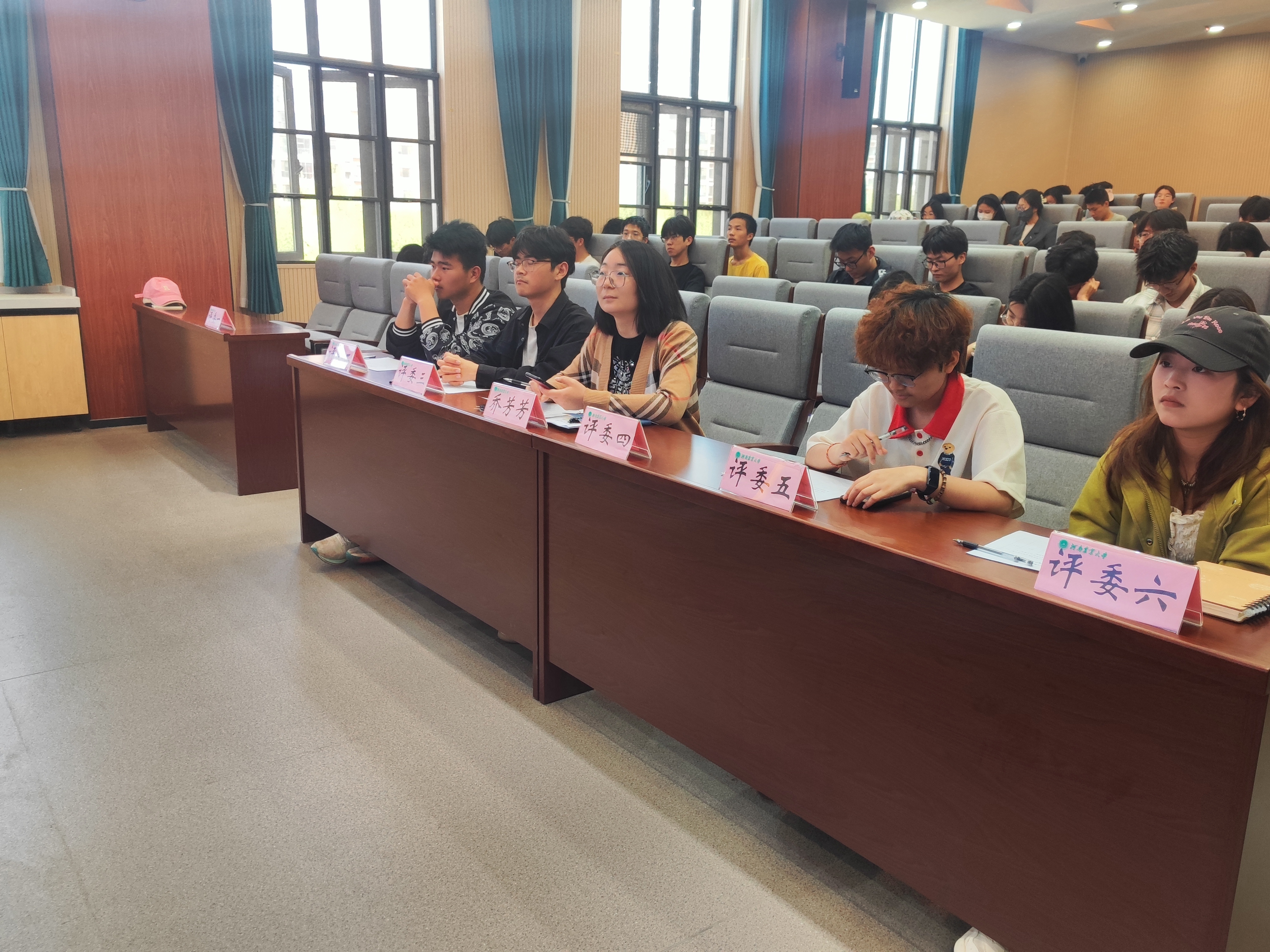 于龙子湖校区力行楼北209会议室举办心理委员技能大赛暨十佳心理委员评选活动。本次活动由2022级辅导员乔芳芳和2022级学生代表赵浩、李文天、李晓娜、马雅楠担任评委,2022级和2023级同学积极参加,此次大赛由院团委心理部干事郭心洁和杨欣然主持。