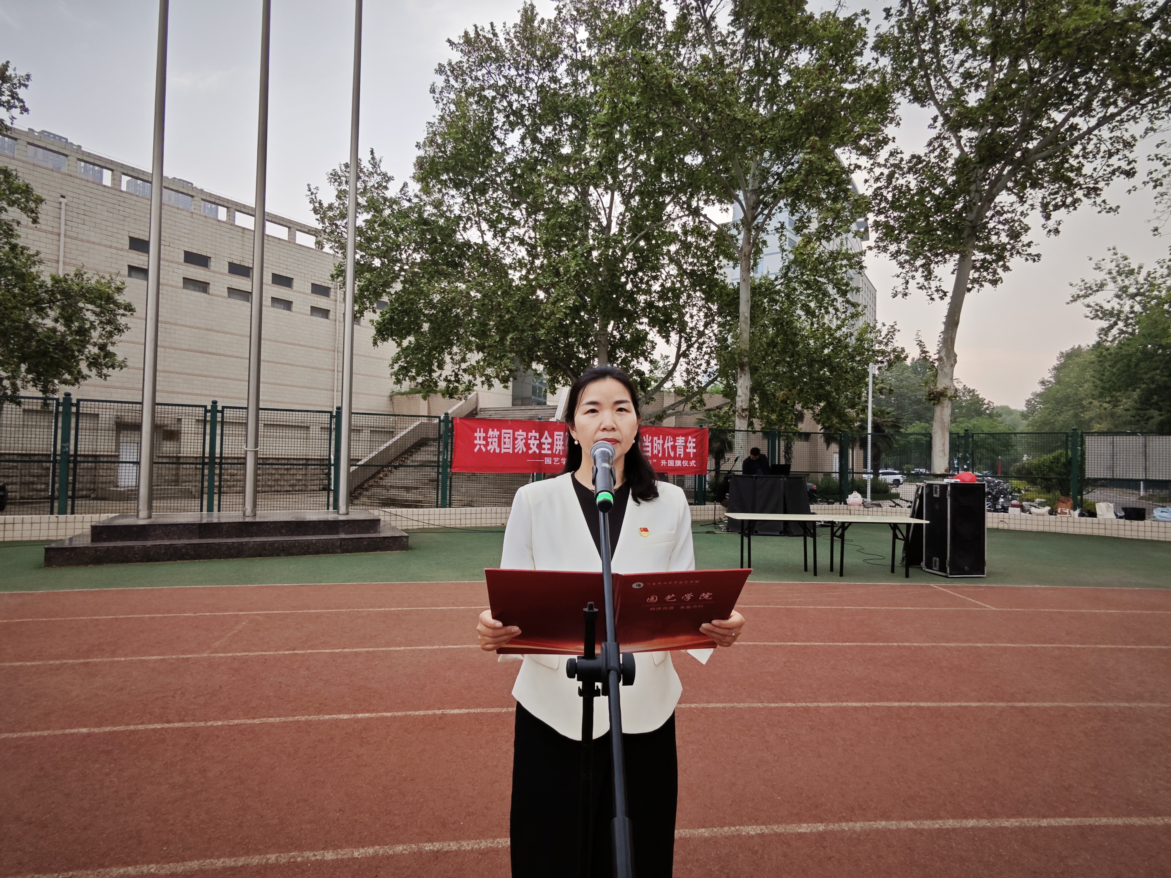 迎着清晨的阳光,伴随着慷慨激昂的《义勇军进行曲》五星红旗冉冉升起,全体师生庄严肃穆,行注目礼。2023级园艺类1班团支书马菲阳作国旗下发言,围绕“国家安全,人人有责”,号召同学们树立国家安全意识,用实际行动捍卫国家安全。
