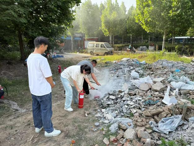 最后,师生在力行楼前的开阔地带进行了一次消防演练实战。这次演练不仅帮助大家掌握了消防设备的操作,还极大增强了他们应对紧急情况的实际能力。