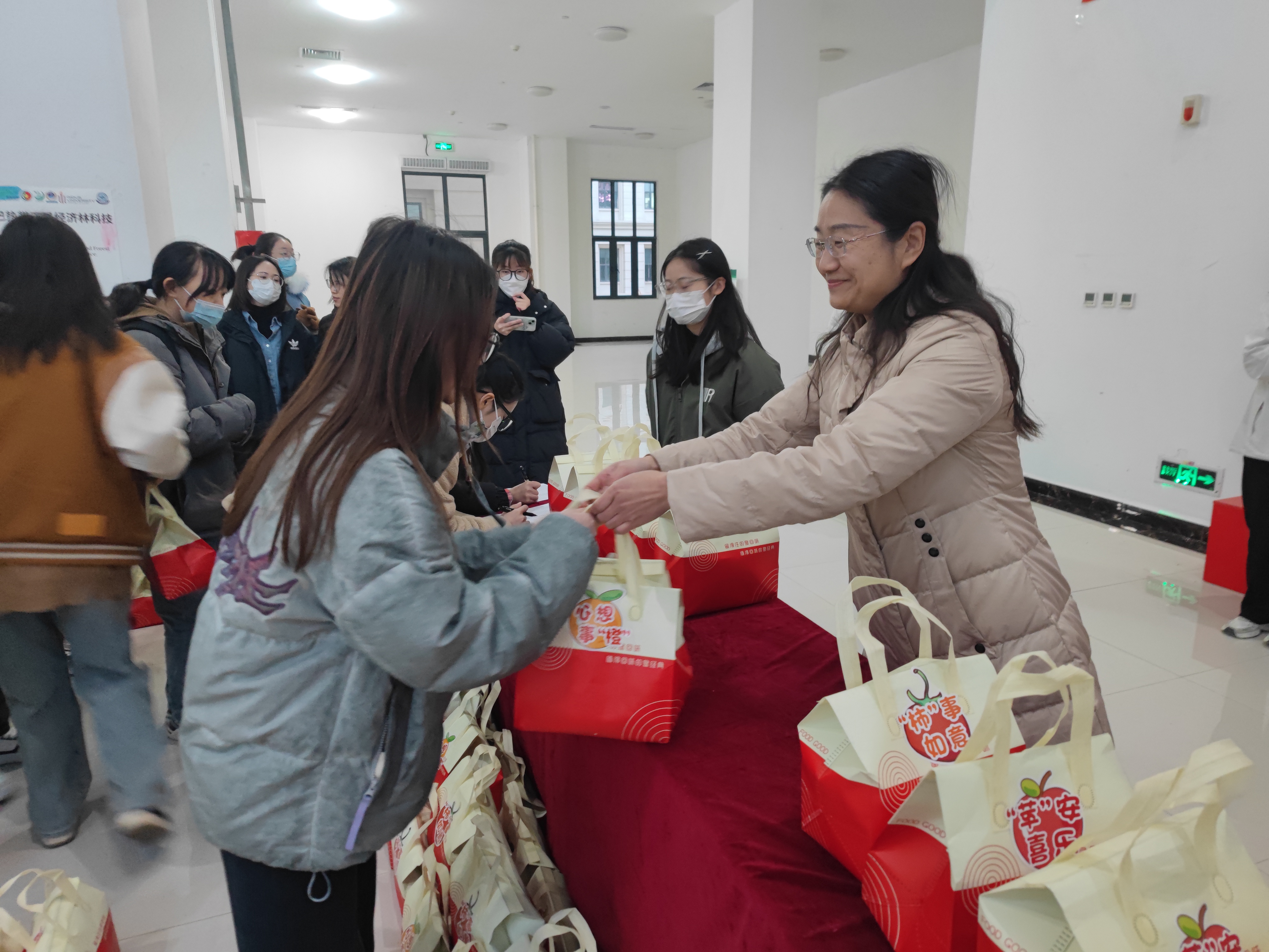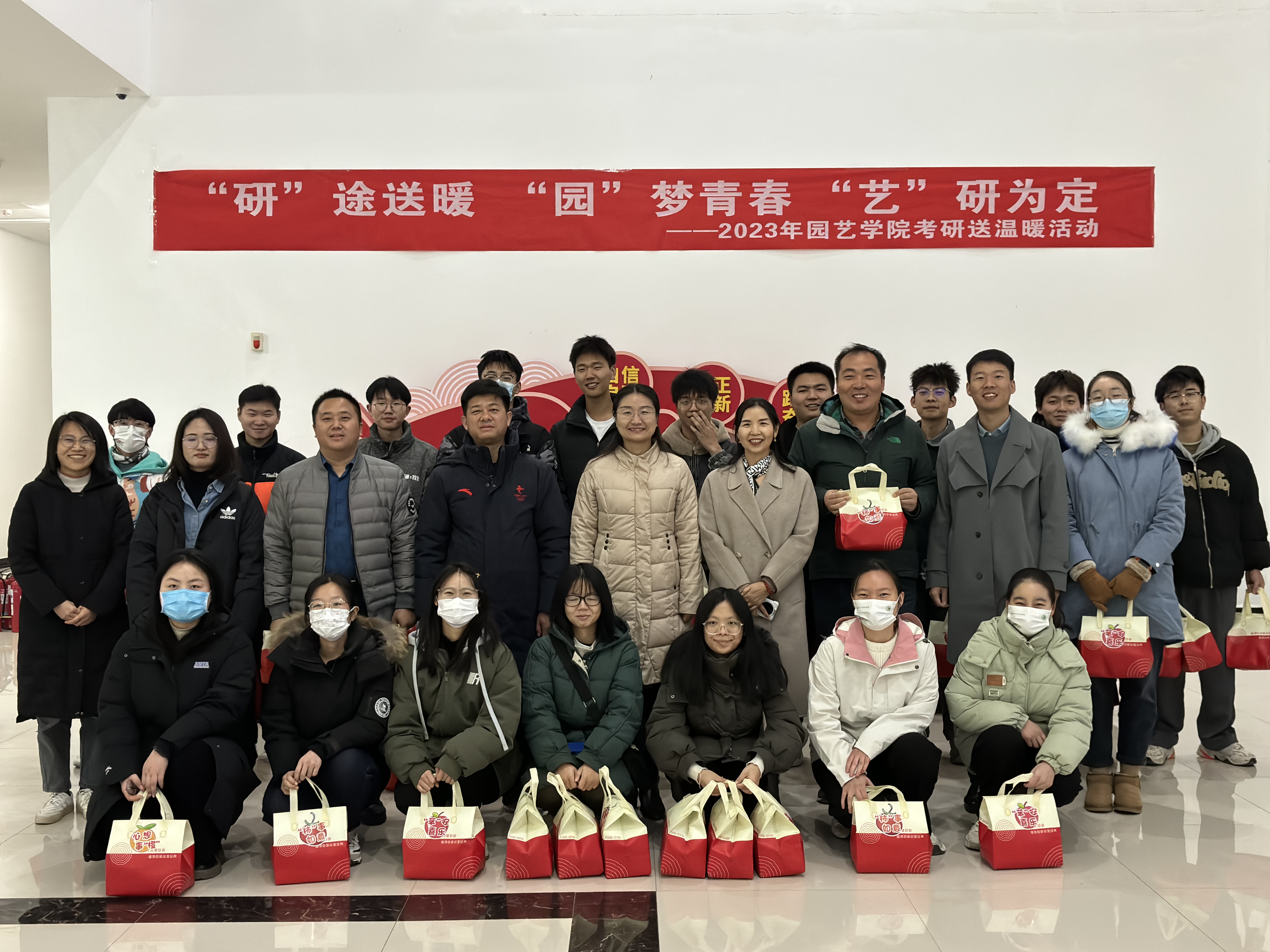 于龙子湖校区力行楼一楼大厅举办“‘研’途送暖‘园’梦青春‘艺’研为定”2023年考研送温暖活动,院党委书记秦素玲、院党委副书记毛会坡、副院长郑先波出席,各年级辅导员和2020级考研学生代表参加。