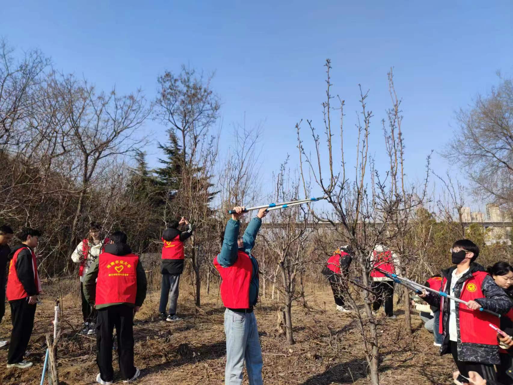 志愿者协会和青马班学生骨干来到郑州市管城区中医院青龙山院区,为院区的梨树开展志愿修剪活动。
