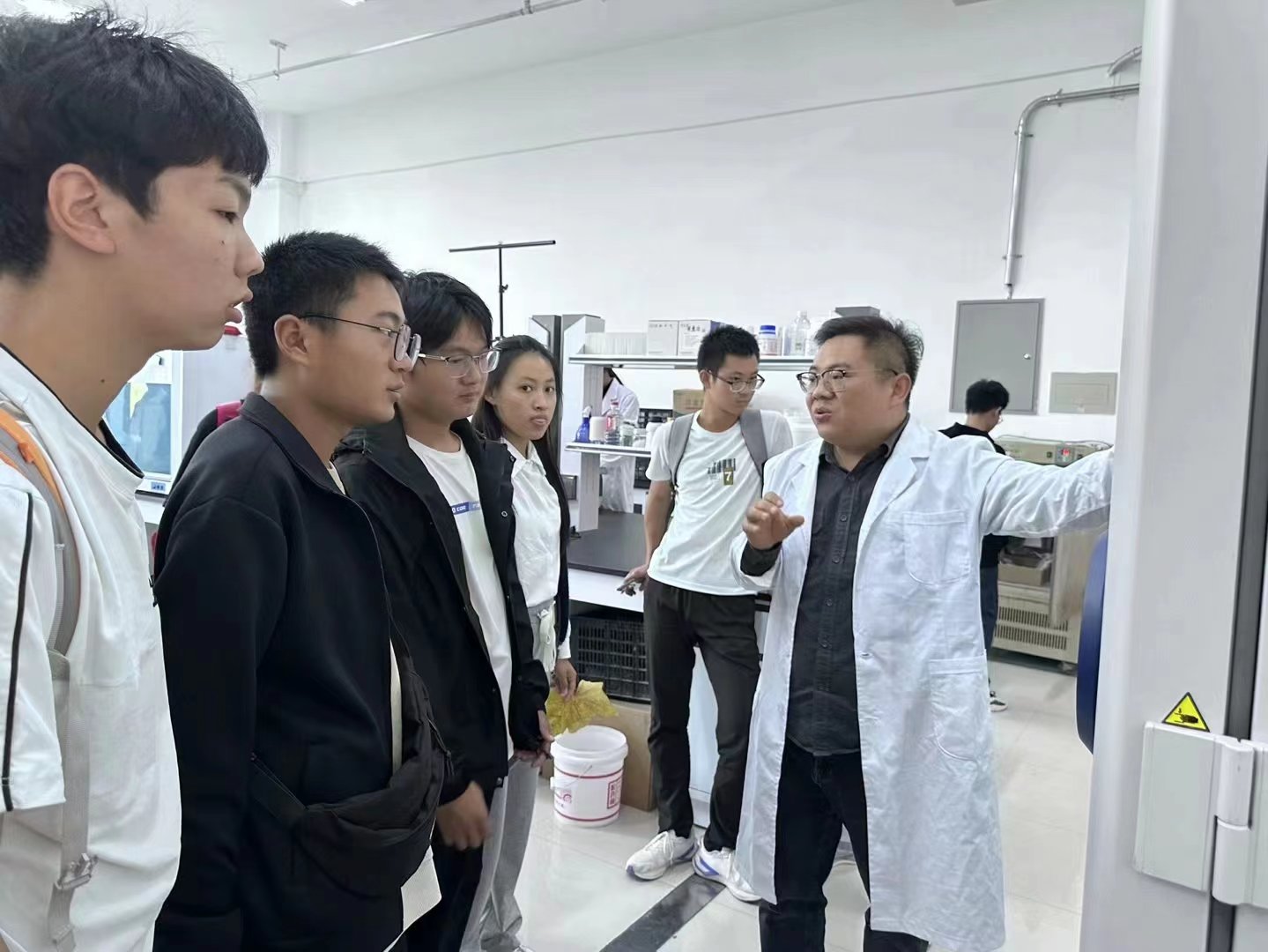 各个团队的负责老师为同学们讲解了实验室相应器材的不同作用以及它们的具体使用方法。在这里,同学们见到了称量更精准的电子天平,过滤更高效的减压过滤器,使用更便捷的分光光度仪以及各种各样新奇又实用的实验器材,也了解了不同实验室所进行的不同的研究项目。同时,老师们也热情地邀请同学们积极报名科研助理,通过动手实践参与到澳门银河娱乐城