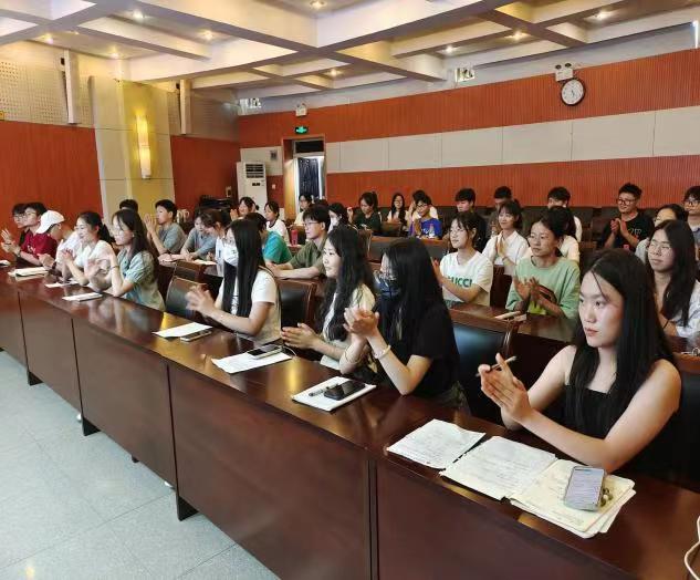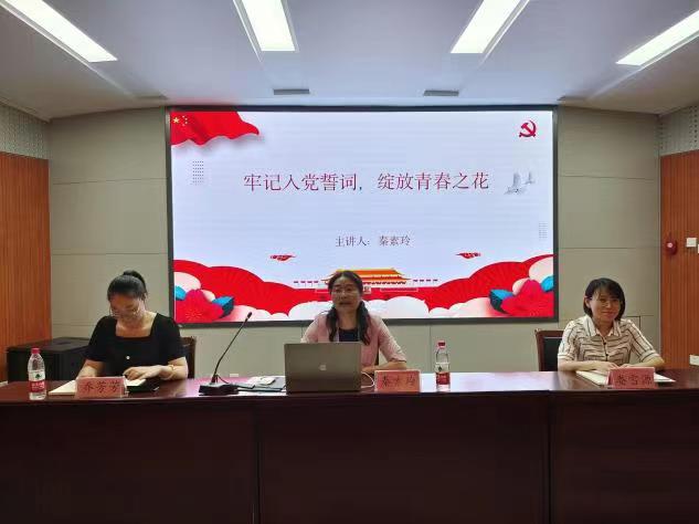 党委书记秦素玲于文化路校区100人报告厅以“牢记入党誓词,绽放青春之花”为主题讲党课喜迎七一,2021级辅导员娄雪源、2022级辅导员乔芳芳、第五期、第六期青马班学员及学生党员参与。