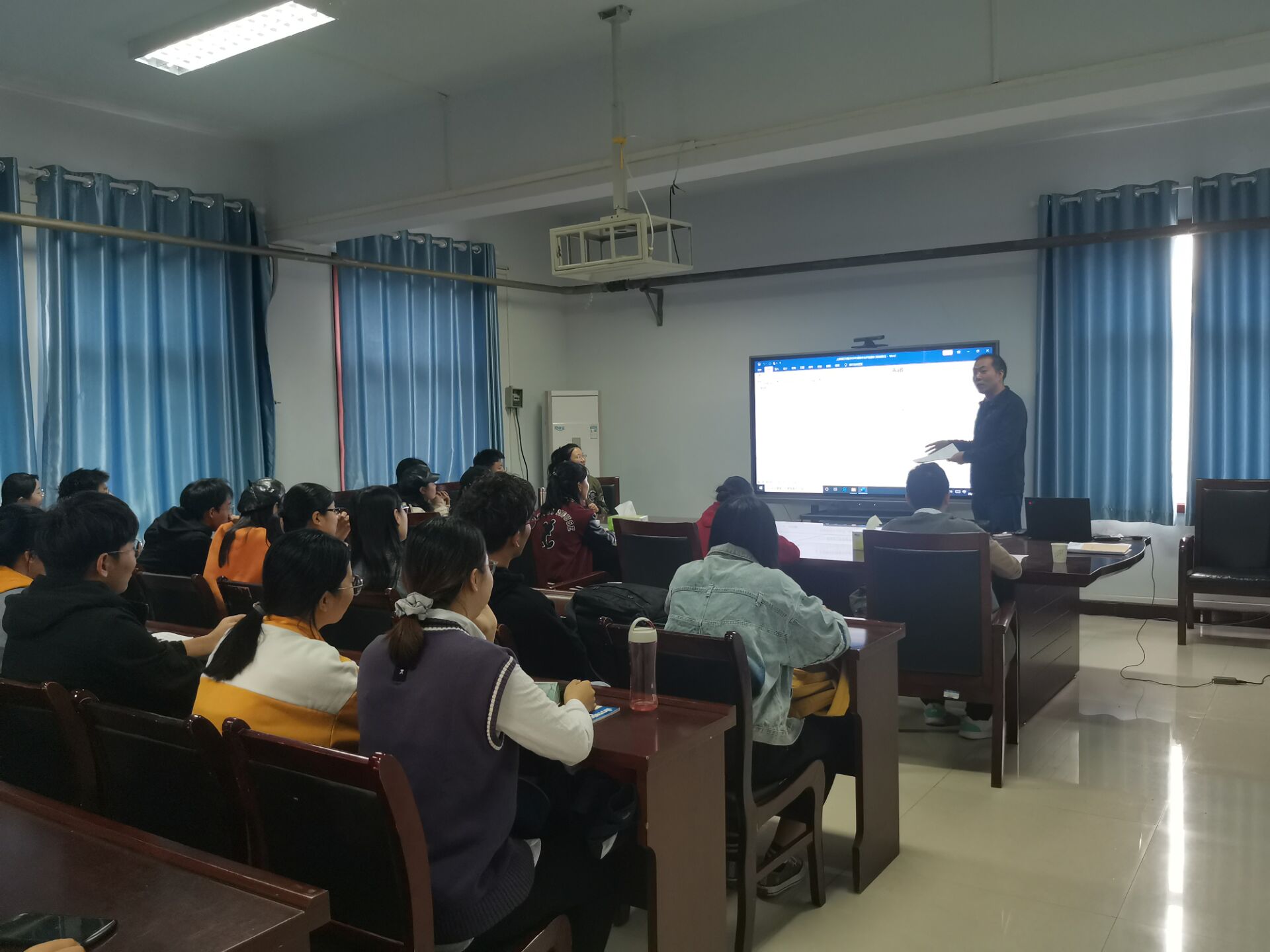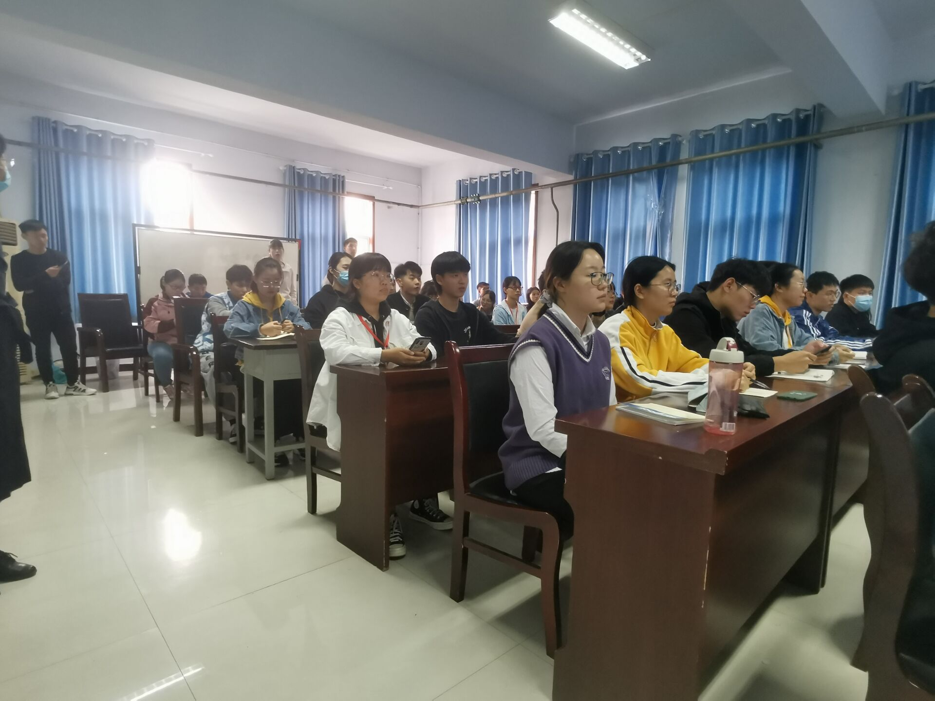 ,澳门银河娱乐城 在文化路校区二号楼413会议室召开2020年本科生奖助学金评选工作会。澳门银河娱乐城 17级辅导员冯帅老师、18级辅导员陈桃老师、19级辅导员黄婉珺老师出席会议,17、18、19级各班班长支书及20级助理班主任全部参加。