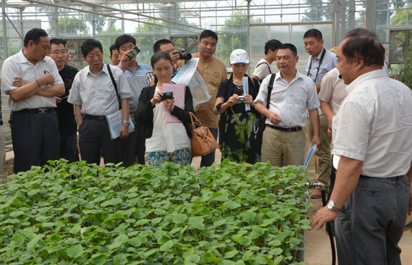 国家大宗蔬菜产业技术体系岗位科学家孙治强教授承担的2014年度栽培与营养研究室新技术示范现场观摩交流会在毛庄绿园基地进行。此次观摩会共展示了来自全国各地13位岗位科学家的17项现代蔬菜生产技术,包括根结线虫防治技术、水肥一体化、水控温苗床、基质栽培、盆栽、伴生栽培、砧木、富硒番茄栽培等技术。国家大宗蔬菜产业技术体系首席科学家、中国农科院蔬菜花会所杜永臣所长,国家大宗蔬菜产业技术体系栽培与营养研究室主任、浙江大学喻景权教授莅临观摩现场进行指导,来自国家大宗蔬菜产业体系栽培与营养研究室的全部岗位专家、国家大宗蔬菜产业体系部分实验站、河南省大宗蔬菜产业技术体系全部岗位专家和实验站、部分蔬菜生产基地县共100余人参加了本次现场观摩交流会。