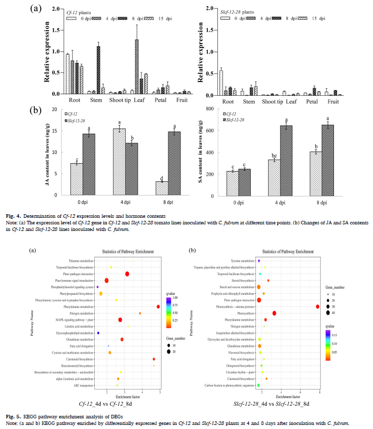 Cf-12对叶霉菌抗性形成的遗传基础及抗性生理和转录差异,不仅有助于深入解析