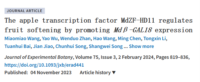 Journal of Experimental Botany发表了题为“The apple transcription factor MdZF-HD11 regulates fruit softening by promoting