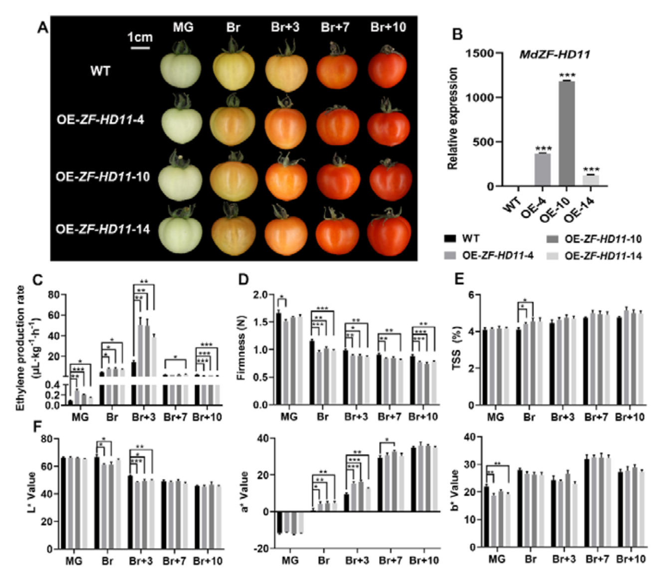 MdZF-HD11促进了番茄果实的软化(图3)。综上所述,该研究解析了